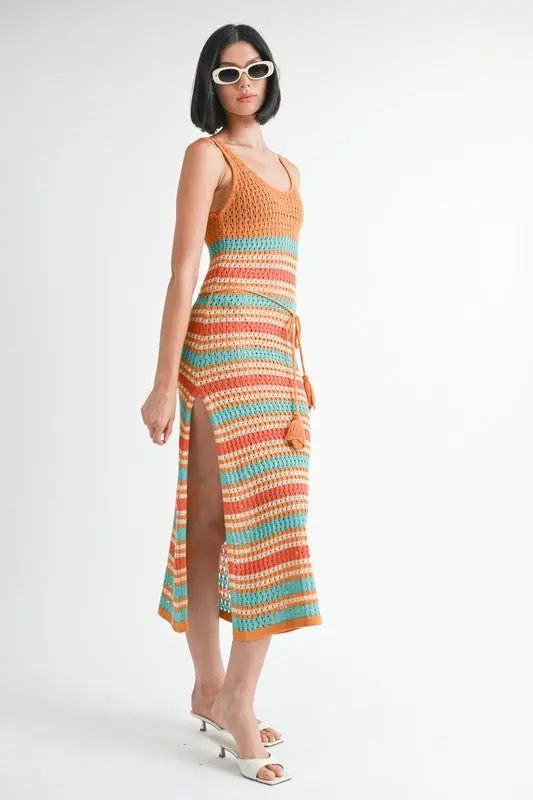 Ever dream of that perfect vacation outfit? This striped crochet dress is the perfect resort wear! Striped, slightly see through, perfect to take from day to evening with beach club vibes!