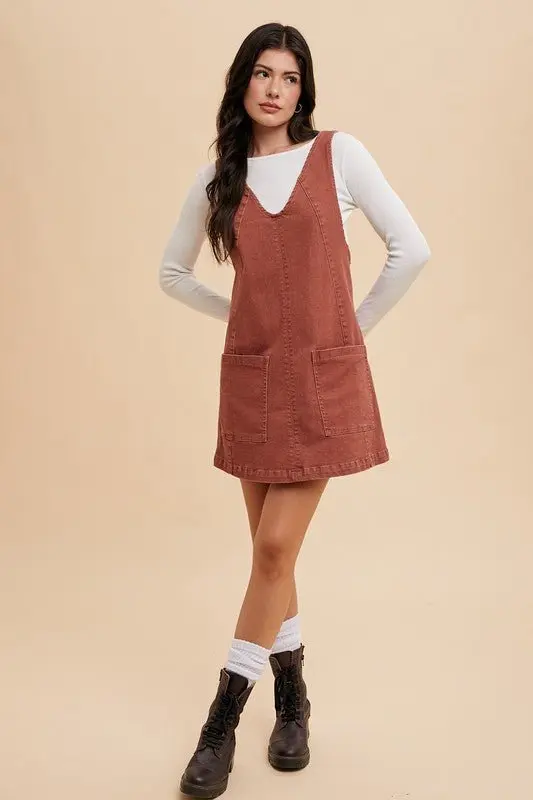The V-Neck Denim Overall Dress with Pockets is a versatile and stylish must-have. It has a flattering V-neck and adjustable straps for a customizable fit. The denim fabric adds a trendy touch, while the overall style and pockets add convenience. Layer it over different tops for various looks, making it a suitable choice for any occasion.